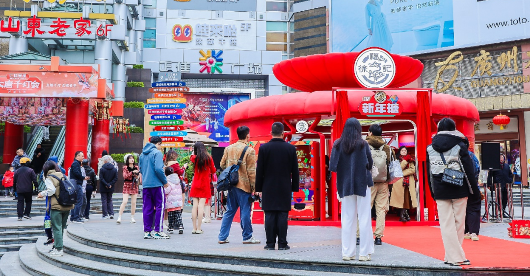 近日,在广州正佳广场,一个4m高的大型徐福记新年糖桶俘获了整个广场的视觉C位,吸引到不少消费者驻足打卡观赏。新年糖是徐福记最大的春节IP,此次徐福记按照约1比30000的比例放大全新升级的新年糖桶并以快闪店的形式“高调”现身广州,这一把龙年“年味”的输出,不仅赚取到一波消费者好评,也触发了新年年货大战的高潮。
