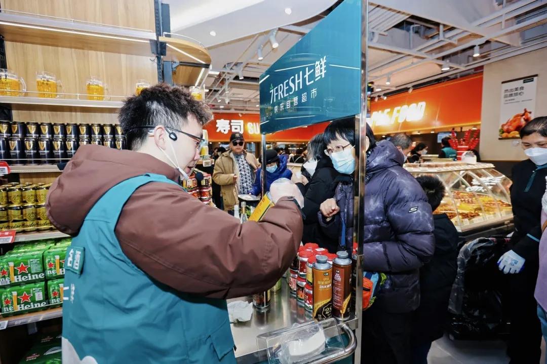 春节临近,年货采购如火如荼,而酒水作为礼赠与宴饮的“硬通货”,消费需求尤其显著攀升。1月30日,京东七鲜超市北京西红门荟聚、上海世纪汇双店齐开,店内人潮涌动,荟聚新店三日客流量近15万人次。