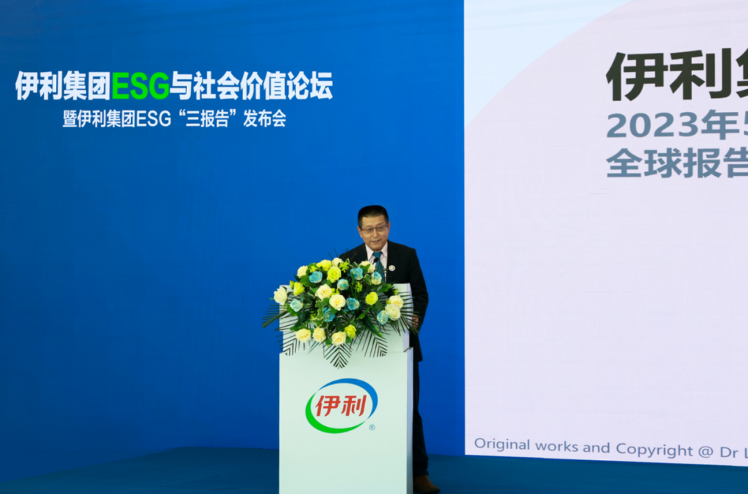 伊利集团董事长兼总裁潘刚:“始于绿色,兴于共赢,归于美好,这就是伊利的可持续发展之道。自2007年发布中国民营企业第一本《企业公民报告》并提出‘绿色领导力’以来,伊利始终坚持长期主义和利他精神,凝聚多方力量构建‘全球健康生态圈’,推动商业价值和社会价值的共同繁荣。”