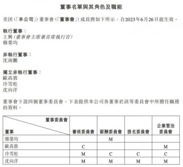 6月25日,美团再次发布公告表示,王慧文因个人健康原因,提出辞去公司非执行董事、公司董事会提名委员会成员和公司授权代表职务,自2023年6月26日起生效。王慧文辞任后,提名委员会将由冷雪松先生和沈向洋博士组成,冷雪松继续担任提名委员会主席。