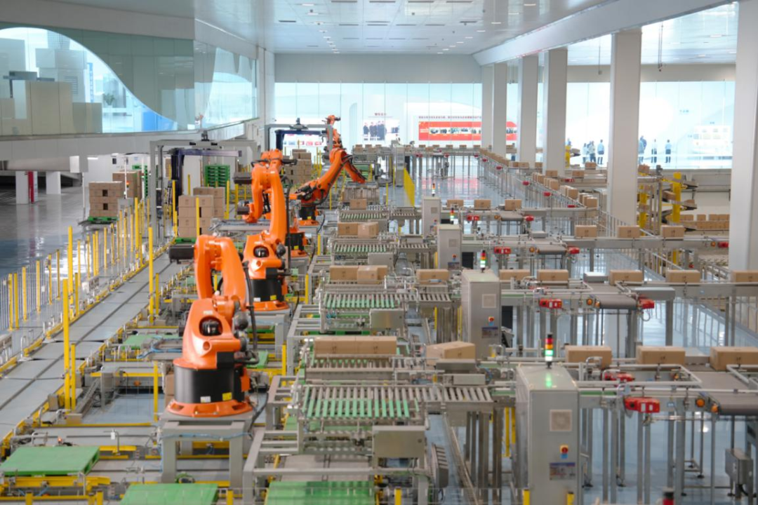 当大会观摩团走进第二站——伊利全球乳业智能制造产业园,看到了这样一番景象,在干净的无人车间里,AGV智能搬运车灵活运转、机械臂轻松完成产品的传送及举放……身处这个基地,无论走到哪里,都能感受到全程无人化、过程透明化、生产高效化、信息可追溯化带来的先进技术气息。