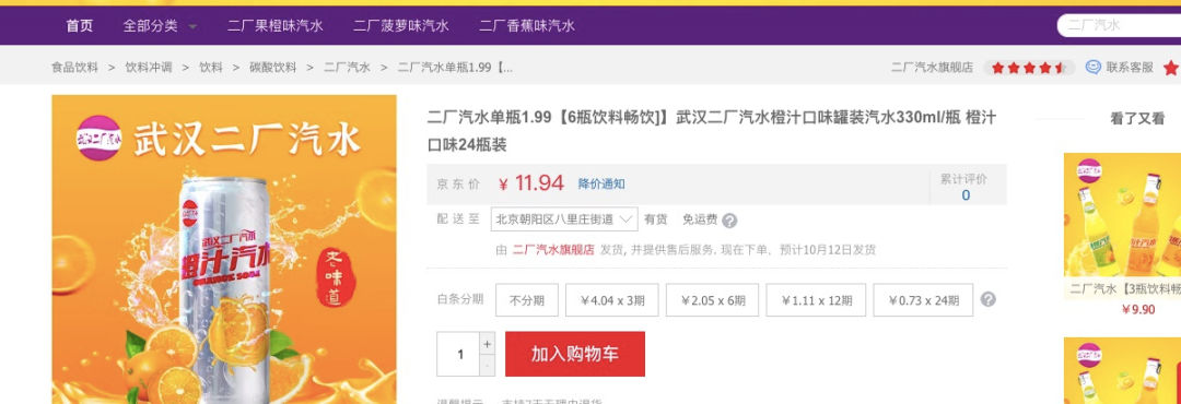 这次以更高品质的产品,以及低于2元的价格推出汽水,这个产品的目标客户主要是以囤货为主的年轻人,口味以橙味为主。在家庭聚餐等消费场景中饮用,销售渠道主要集中在线上,以京东为主。