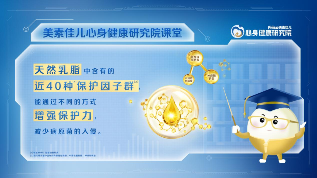 来自WHO权威专家George P. Chrousos教授揭示了天然乳脂中所含营养与免疫力之间的关联。他表示,天然乳脂是增强免疫力、促进组织器官发育的关键营养素,除了能有效支持肠道屏障功能,调节脂质代谢,还能与母乳中丰富的乳铁蛋白与免疫球蛋白共同作用,调节炎症反应,助力免疫功能正常发育。同时大脑与免疫系统之间存在动态交流,在机体遇到免疫反应时,所释放的炎症性细胞因子可以进入大脑改变神经递质功能,导致心身健康问题。因此,确保给予充足的母乳喂养尤为重要。母乳富含的天然乳脂、乳铁蛋白、免疫球蛋白以及母乳低聚糖,例如NvHMO (4'-GL)这种母乳低聚糖结构,都是支持免疫力增强帮助组织器官正常发育的关键营养素,不仅能有效的对抗外界致病菌,同时能帮助减少体内炎症细胞因子的产生,从而减少病痛、悲伤消极情绪的产生,为宝宝的心身健康成长奠定坚实的基础。