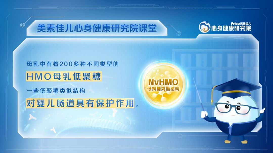 母乳中含有丰富的小分子蛋白能有效促进宝宝肠道的消化吸收,母乳中有着 200 多种不同类型的母乳低聚糖,NvHMO(4'-GL )就是母乳低聚糖的一种,可以促进肠道有益菌的生长,抑制有害菌,帮助建立良好的肠道菌群环境。上海交通大学医学院附属新华医院发育行为儿童保健科主任医师盛晓阳教授表示:“通过改善菌群能够帮助婴幼儿的肠道健康,从而促进心身健康成长。”