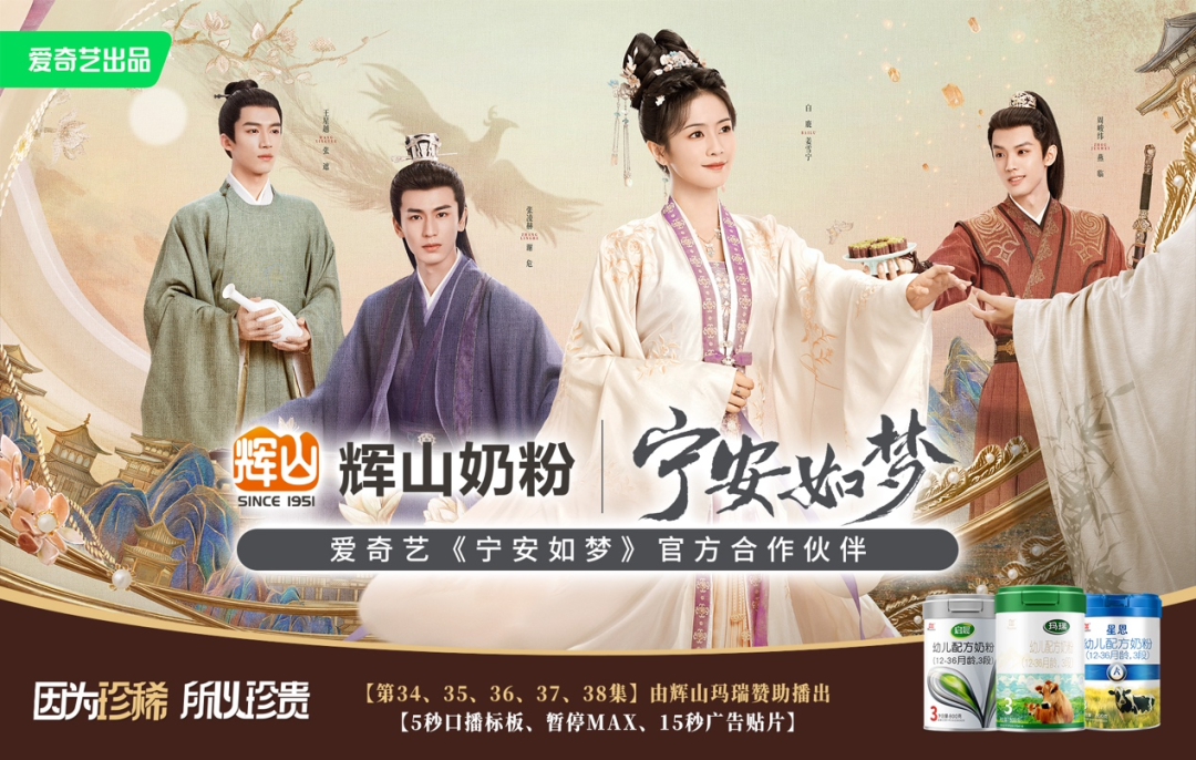 一个奶粉品牌保持长久不衰的秘诀,很大程度上在于是否拥有与新生代用户深度对话的能力。以三大明星产品为支点,辉山奶粉在2023年升级品牌营销战略,开启双代言人模式,拉进与新生代母婴群体的距离;合作的女性励志剧《女士的品格》在湖南卫视和芒果TV双平台播出,该剧开播以来便蝉联卫视收视冠军,收视率持续破2%,狂揽全网热搜700余个;2023年末,先后押宝爱奇艺《宁安如梦》《一念关山》两部大热剧,投放形式上选择“品牌代言人5秒口播、暂停MAX、15秒广告贴片”形式,锁定用户看剧全链路,“辉山奶粉助力男女主云养娃”等话题成功实现品牌破圈传播,精准人群曝光达13.82亿次。
