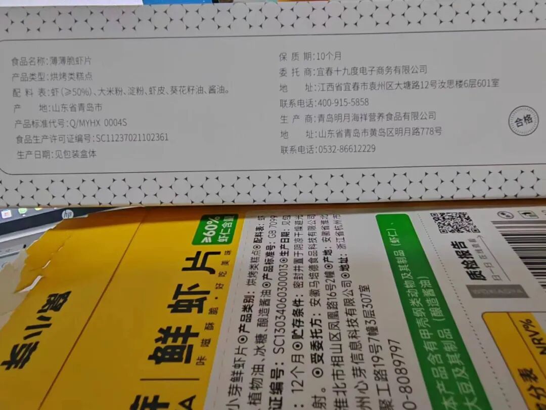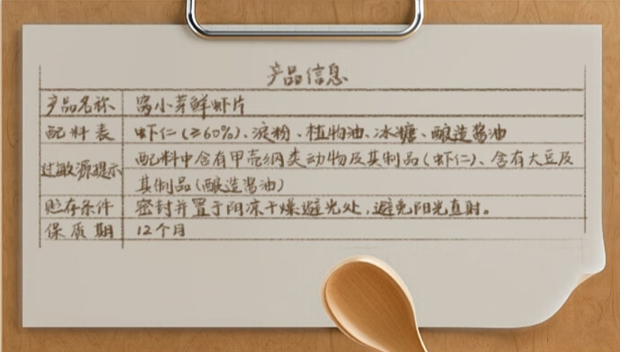 所以不管是秋田满满的薄薄脆虾片,还是窝小芽的鲜虾片,都在外包装上标明了“致敏物质提示”,便于消费者进行甄选。