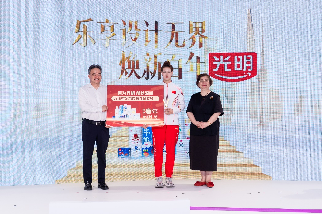 因为光明,所以温暖。作为具有深厚底蕴的百年乳企,光明乳业深知自身肩负的社会责任。发布会上,作为体育界的杰出代表,同时也是光明大家庭中的一员,与会嘉宾通过视频共同回顾了辜海燕在巴黎残奥会上的精彩瞬间,辜海燕则现场与大家分享了自己跌宕起伏的人生经历。作为娘家人,朱晨红代表光明食品集团向辜海燕颁发金牌员工荣誉奖牌,感谢她为国争光,为光明添彩。黄黎明代表光明乳业向辜海燕及其家人送上三年光明鲜活营养陪伴。