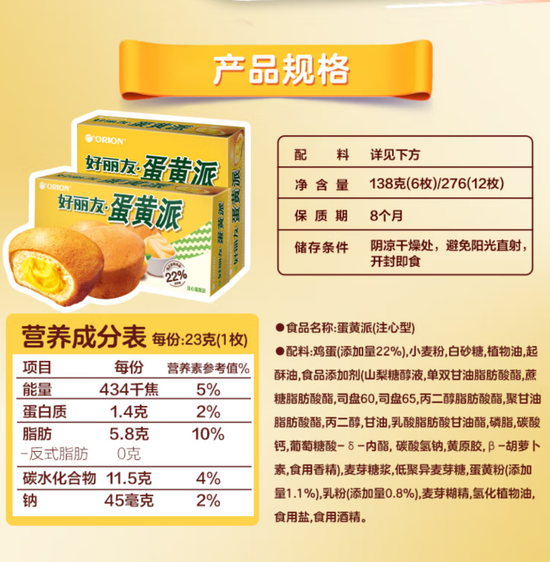 不过,两者拥有的食品添加剂种类略有不同,比如达利园的蛋黄派里面有山梨酸钾,但好丽友的蛋黄派则没有。