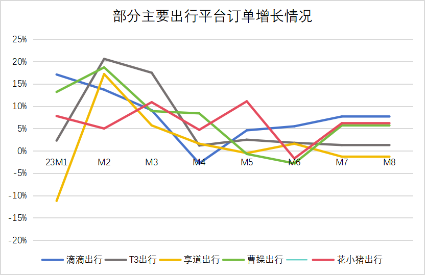 根据交通运输部数据可以看到,各主要出行平台中,滴滴出行在订单增长方面保持了较为稳健的走势,仅在4月出现过一次下滑,其余月份皆保持了较高的增速,尤其是加码补贴以来,逐月订单领先其他平台。