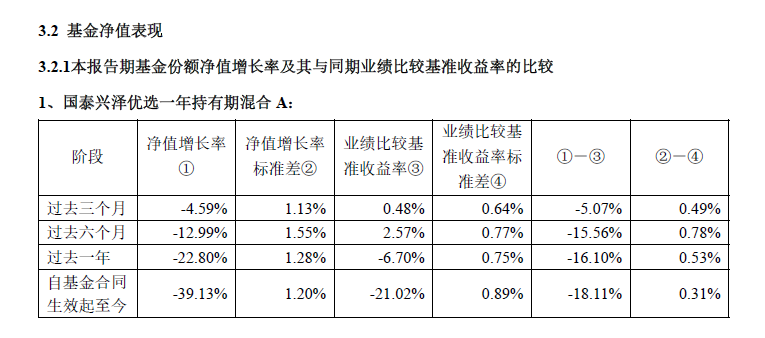 国泰兴泽优选一年持有期混合A:净值累计下跌42.39%