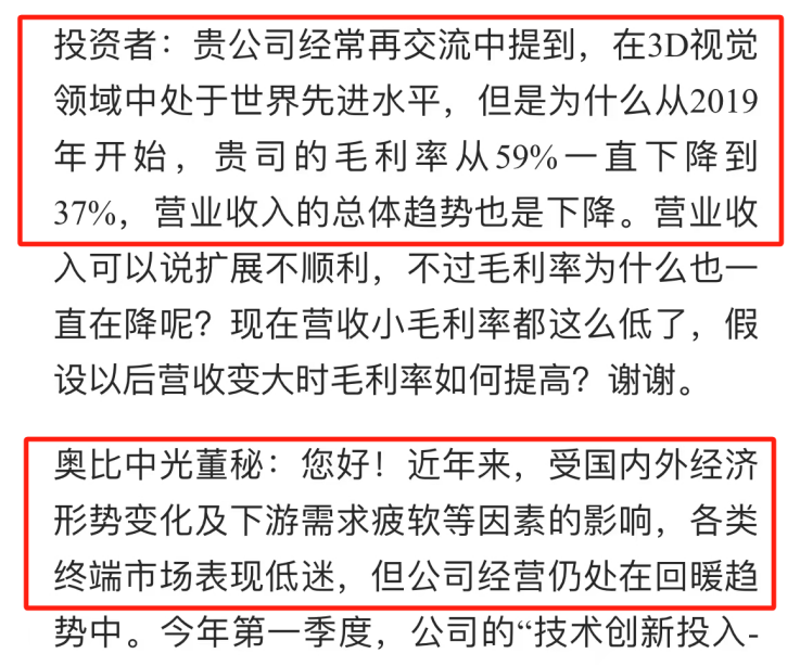 不过,有券商分析师认为公司盈利在2025年。据国海证券分析师预计,奥比中光将在2025年实现盈利,归母净利润0.19亿元。国盛证券分析师同样认为奥比中光将在2025年实现盈利,归母净利润为0.57亿元。