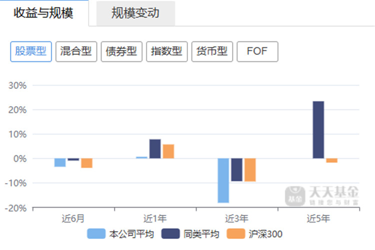 从股票型基金的业绩来看,天天基金网数据显示,永赢基金旗下的4只股票型基金中,近6月、近1年、近3年平均回报率分别为-3.43%、0.64%、-18.16%,同期同类基金的平均业绩分别为-0.91%、7.76%、-9.34%。(如下图)