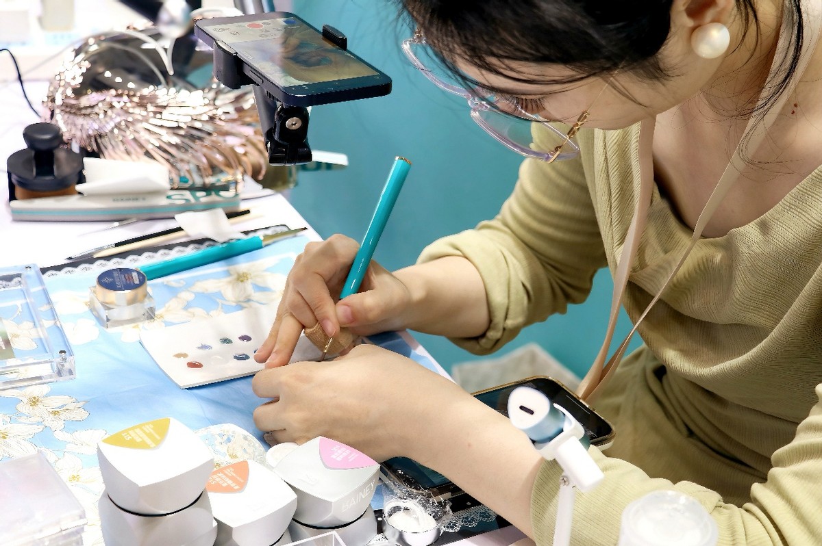 ▲员工录制甲油胶彩绘演示视频。Zoe|摄