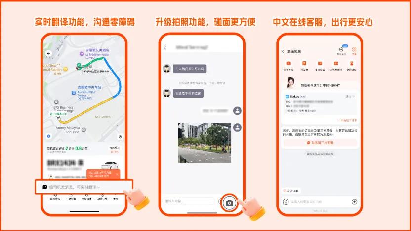 滴滴海外出行作为用户在海外旅途中贴心的同行者,中文界面,支持中/英文输入起终点,下单轻松又方便。滴滴App内还有实时翻译功能,让您在App上与海外司机沟通零障碍,无论是询问路线还是分享旅途趣事,都能畅所欲言,部分城市还试行通过App内消息给司机发照片功能,司机接你更方便。更有7×24小时中文在线客服,随时为您解决行程中的疑问,让您在国外也能感受到家的温暖。