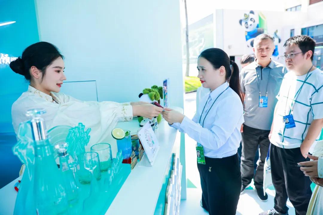 五粮液专卖店的机械臂调酒区域人气爆棚,成为现场极具吸引力的互动热点。为博鳌亚洲论坛成立25周年匠心定制的“和美·礼赞”特调,融合传统酿造技艺与智能科技,以清冽雅致的风味承载东方气度与山海气韵,让现场嘉宾沉浸式感受“匠心与科技的共生”,凭借独特的体验与别致的巧思,深受现场嘉宾青睐,吸引众多宾客前来体验。