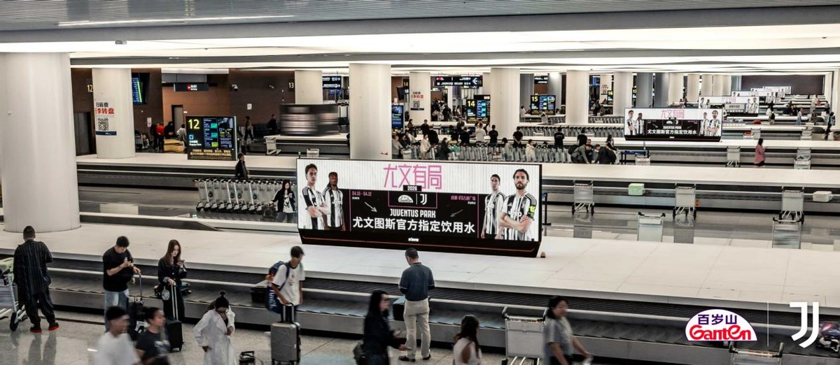 另外,百岁山与尤文图斯的战略协同并不止步于快闪空间。品牌全方位链接城市核心地标,从成都天府国际机场的枢纽长廊,到IFS商圈的城市巨幕,为此次活动进行大屏宣传。这种“全场景式”的视觉呈现,不仅为现场球迷带来了沉浸式的互动体验,更让水中贵族的品质生活方式与成都“巴适”的城市魅力很好地融合在一起。”