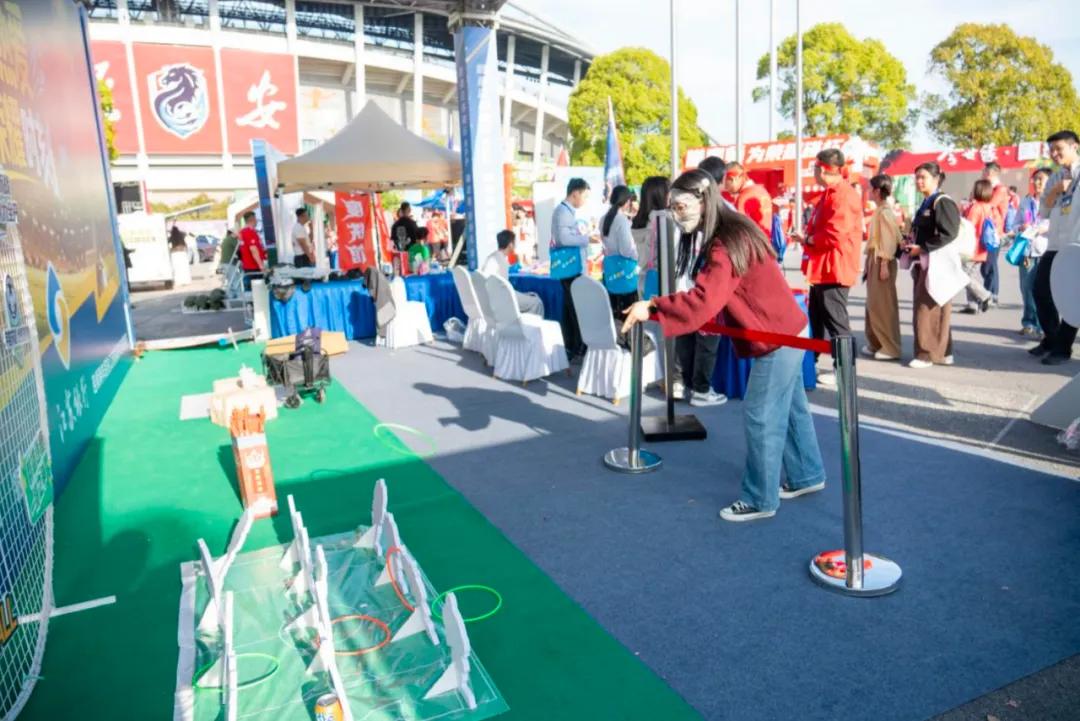 “我的偶像是宿迁队的高驰,长大后我也要像他一样为家乡争光!”一位刚完成挑战的小男孩眼睛亮晶晶的,志愿者摸了摸他的头,送上一份文创抱枕。展位前,不少孩子被可爱的礼品吸引,志愿者们一边耐心讲解金融知识,一边介绍赛事热点,现场氛围温暖而轻松。