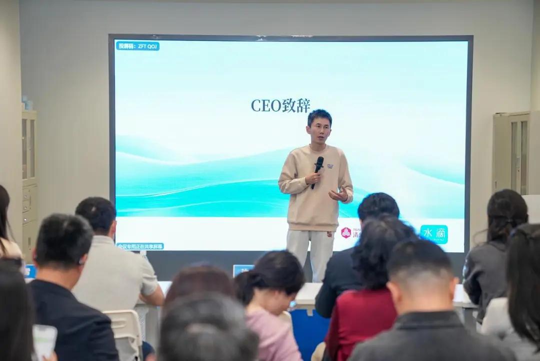 交流环节由水滴公司创始人兼CEO沈鹏的欢迎致辞拉开序幕。作为清华校友、清华大学五道口金融学院全球创业领袖项目首期班毕业生,沈鹏分享了自己从美团到创办水滴公司的成长历程,以及在五道口的学习经历对于他创业历程的重要助力。他表示,水滴未来将持续加大AI大模型等前沿技术的投入,推动保险与医疗产业的深度融合,让更多人享受到普惠健康保障服务。同时,也期待未来能够持续与五道口金融学院保持密切的合作交流。