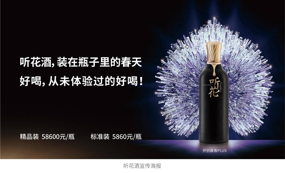 实际上,听花酒自2020年底上市以来,因标准装5860元/瓶、精品装58600元/瓶的价位被冠以“天价白酒”的称号,从而备受关注。