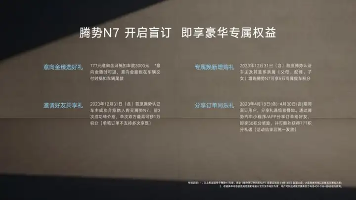 在发布会最后,赵长江宣布腾势N7开启盲订。“腾势N7还将逐步发布智能底盘、智能座舱、智能驾驶三大智能技术。”赵长江说道,对腾势N7的全维智能化实力进行了预告,激起全行业对腾势即将引领智能化下半场的期待。