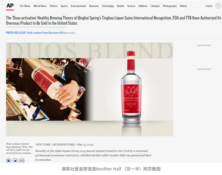 摘要:据美联社等200多家外媒报道,有“天价白酒”之称的听花酒推出了海外产品Another Half (另一半),并获得美国食品药品监督管理局(FDA)和美国酒类及烟草税务贸易局(TTB)批准在美国上市。