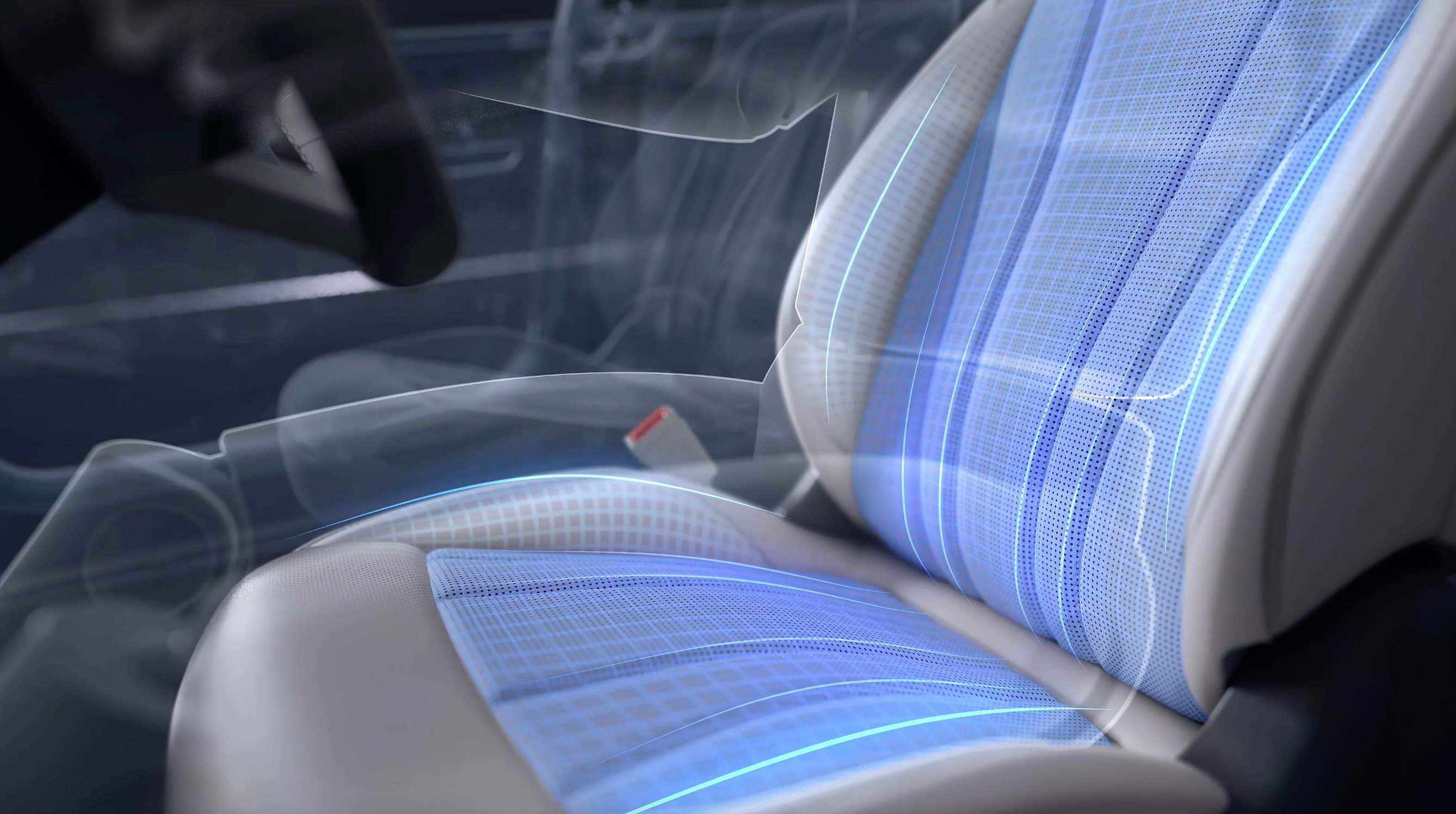 「座椅硬度主动调节技术」则根据车辆的不同行驶模式,模块化智能充放气控制Micro矩阵气柱以改变座椅软硬度及贴合度。如在高速时,座椅气柱主动充气夹紧身体,低速时气柱收缩让其回归柔软,软硬坐感自如兼得。