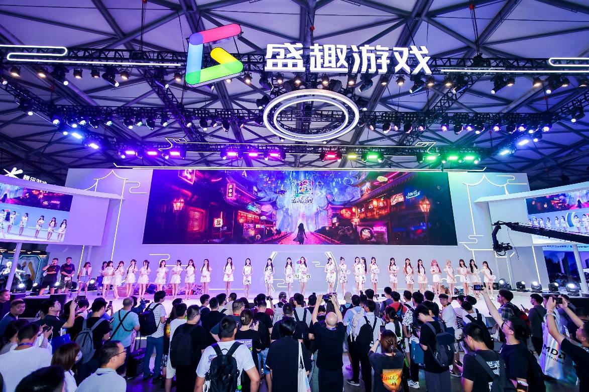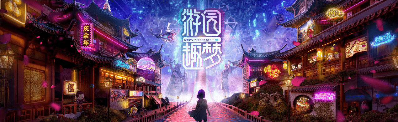 作为历年ChinaJoy最吸引用户眼球的游戏展台之一,盛趣游戏展台今年的开场动画依旧可圈可点。先是以水墨风晕染而成的倒计时渲染气氛,再伴随京剧唱段的音乐背景,以少女的视角逐渐打开了一个从现实通往绚丽的如梦境般的游戏世界,随后带出明快的国风赛博场景,彰显出盛趣游戏的创新精神和独特风格。最后,点题视觉“游园趣梦”跃然而出,传递出了游戏世界是一个富有趣味和惊喜的梦幻园林的意象。