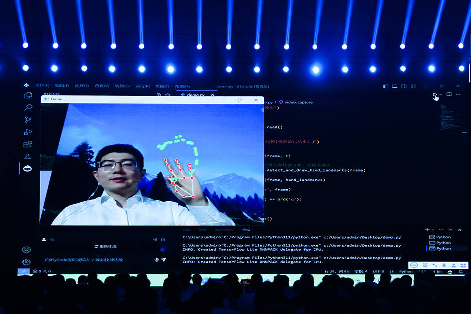 去年科大讯飞全球1024开发者节期间,用两个手指捏合就能写字的“凌空手写”功能惊艳了不少人,对iFlyCode来讲,开发这个功能简直就是“小菜一碟”,刘聪现场简单几步Prompt完iFlyCode界面后,一行代码都不用写,“凌空手写”功能就已马上实现,而在以前,即便是有经验的工程师,也要半天到1天才能完成,现在只需要几分钟。