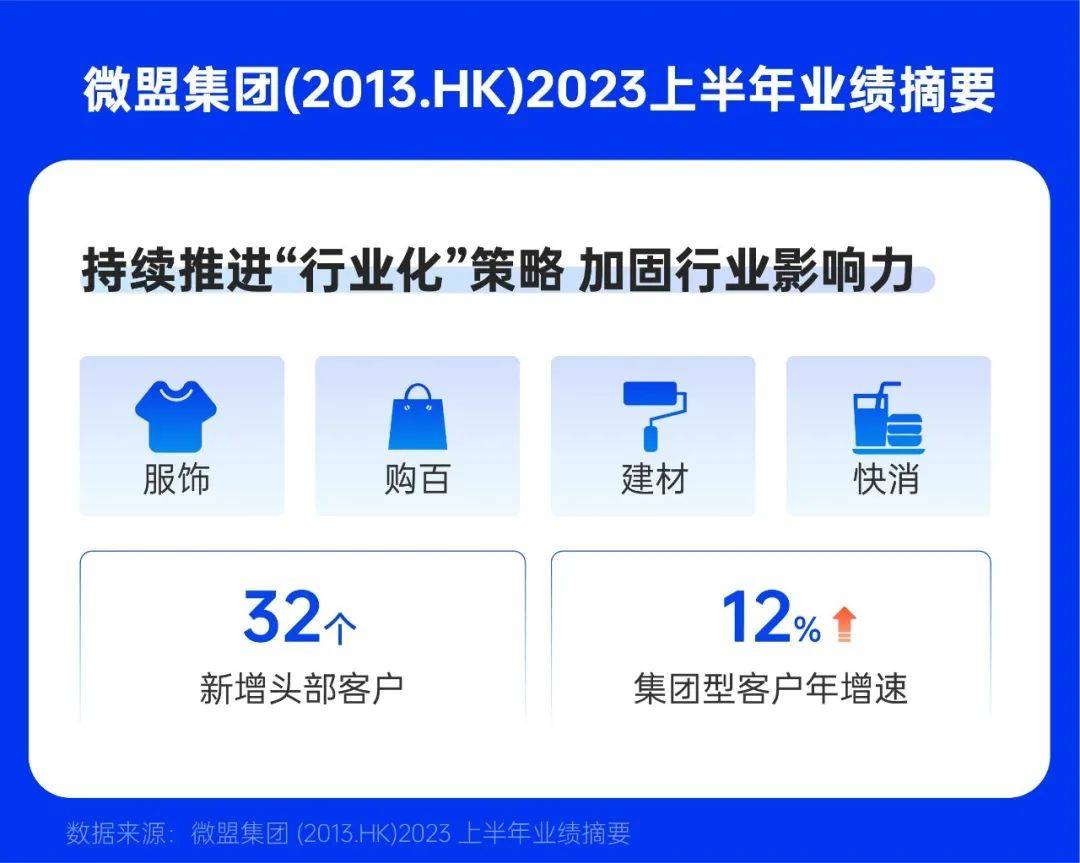 除此之外,微盟还在持续推进行业化策略,其中服饰、建材、快消、购百等四大行业垂直解决方案受到企业青睐。