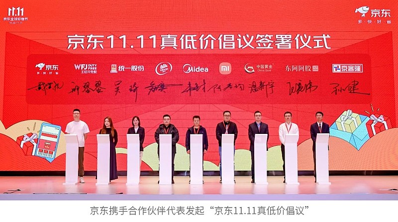 发布会上,在中消协相关单位见证下,京东与美的、小米、维达、中国黄金、统一石化、东阿阿胶、王府井免税、京客隆等多位品牌商家代表,共同发起“京东11.11真低价倡议”。根据倡议内容,京东将与合作伙伴一道,围绕诚信经营、用心服务、降本增效等,共创良性竞争环境、抵制低质低价、维护健康生态、全力保障消费者权益。