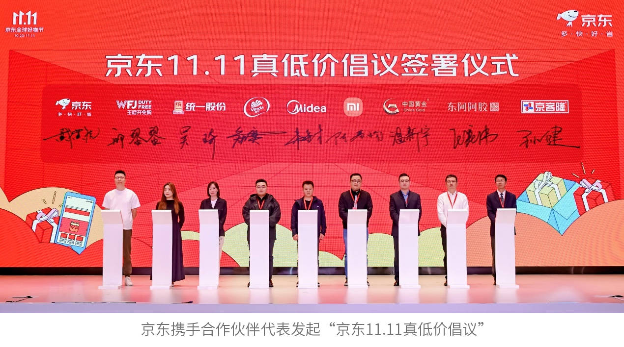 为确保真底价的落地,让利给消费者,发布会上,在中消协相关单位见证下,京东与美的、小米、维达、中国黄金、统一石化、东阿阿胶、王府井免税、京客隆等多位品牌商家代表,共同发起“京东11.11真低价倡议”。根据倡议内容,京东将与合作伙伴一道,围绕诚信经营、用心服务、降本增效等,共创良性竞争环境、抵制低质低价、维护健康生态、全力保障消费者权益。