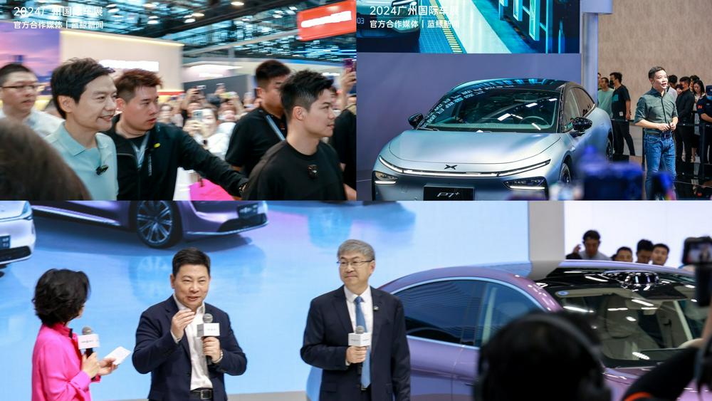 雷军、余承东、何小鹏等著名企业家现身车展为自家展位站台,部分企业还请来了苏炳添、郑钦文等体育健将到现场互动。
