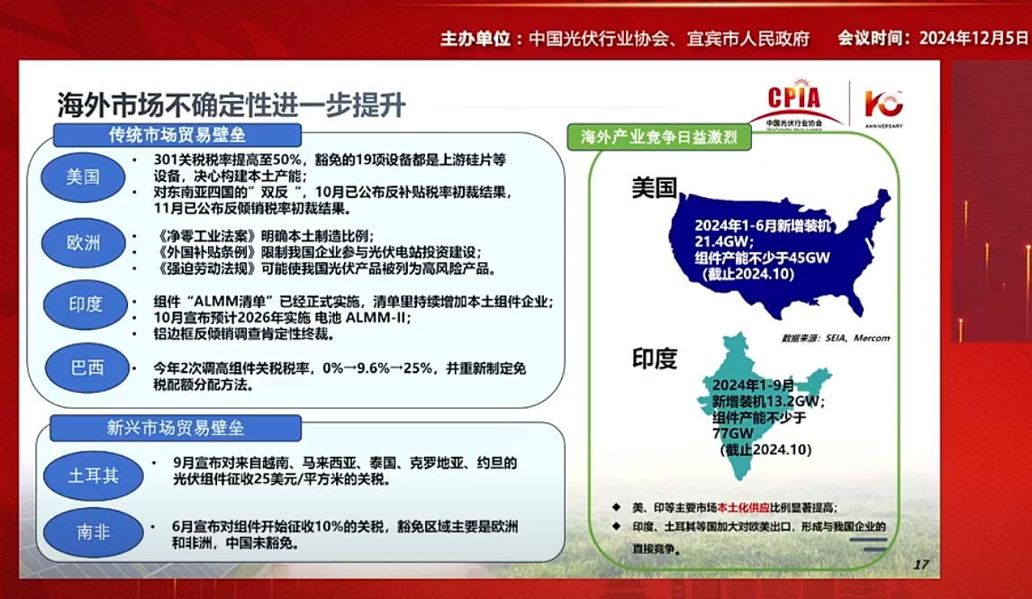“美、印等主要市场本土化供应比例在显著提高。”王勃华称,印度、土耳其等国加大欧美市场出口,与我国光伏企业已形成直接竞争。
