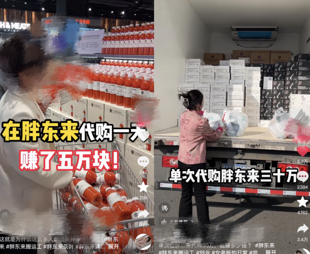 在抖音上,一位粉丝数6w+的博主分享了自己在胖东来做代购的经历。据商家透露:“单次代购胖东来货品可高达30万元,主要采购胖东来自营产品,包括啤酒、果汁、茶叶等。一次利润在5万元,一个月采购3次。对于三四线城市的消费者来说,往返胖东来距离较远,代购就成了最好的选择。”