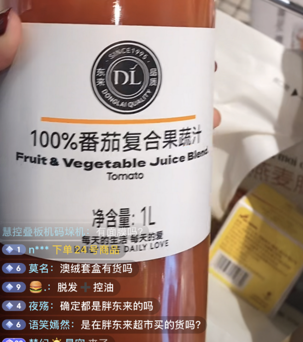 但蓝鲸记者发现,仍有代购在抖音直播逛胖东来,并在直播间挂小黄车,消费者下单后代购当场拿货。值得注意的是,直播代购的商家所售商品比一般代购更贵,原价13元的果汁卖到24.99元,价格翻了近一倍。