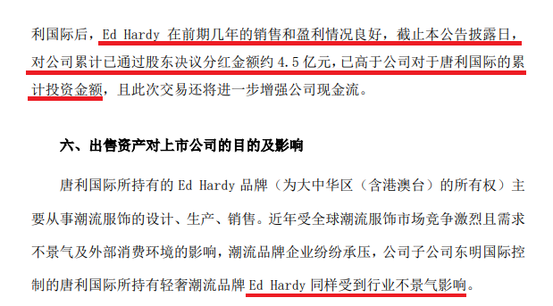 然而,歌力思在公告中指出,全球潮流服饰市场竞争激烈和需求不景气,Ed Hardy也受到了行业不景气的影响。