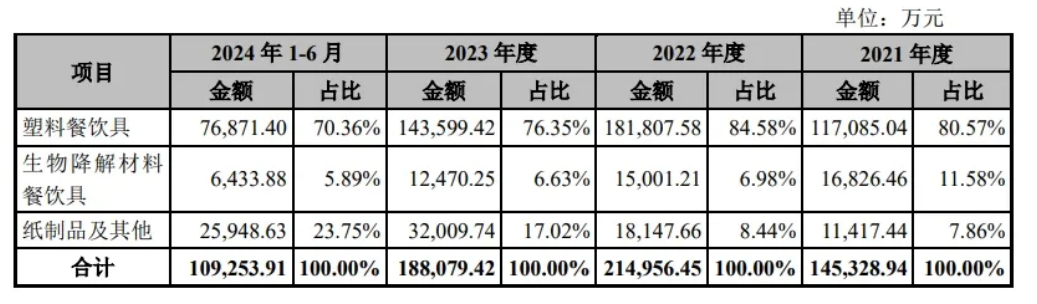 发展过程中,富岭股份的产品体系也逐步完善,包含塑料餐饮具、生物降解材料餐饮具、纸制品及其他三大类。然而,富岭股份面临塑料餐饮具营收占比高的问题,招股书显示,塑料餐饮具占营收比重常年在80%以上。各国“限塑政策”下,无疑给富岭股份未来的发展披上一层阴影。