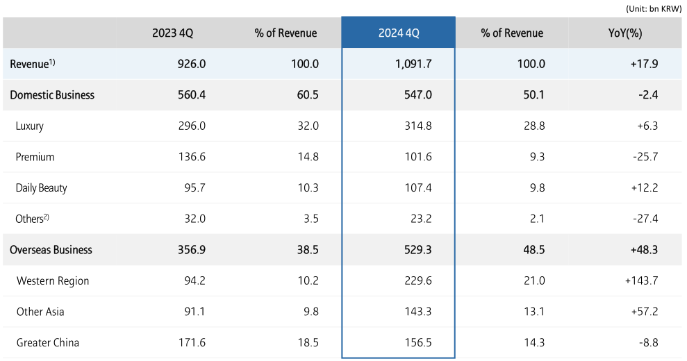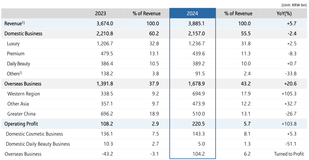 在营收和利润双增长的背景下,爱茉莉太平洋集团在2024年实现了多年来的首次正增长。