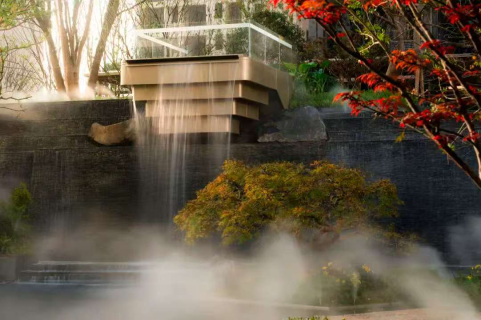 在景观营造上,项目充分借势山景、引水造势,依托自然山地高差,耗费600吨天然石材打造“园林不见砖”的台地景观,层次丰富且极具质感;更在武汉首创超40米长的安哥拉黑石材瀑布群,搭配西班牙油橄榄、羽毛枫等珍贵植被群落,让园林不仅是观赏空间,更成为可游可赏、与自然共生的生活场景,每一处细节都彰显着高端品质与美学追求。