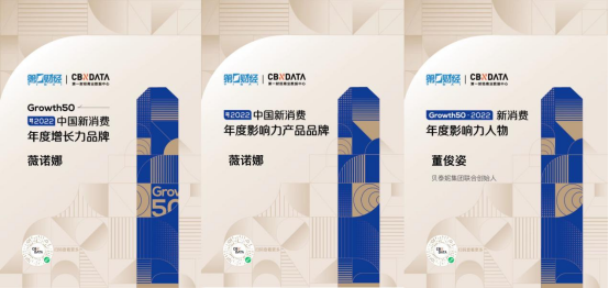 8月24日,由第一财经、CBNData(第一财经商业数据中心)主办的「2022中国新消费品牌增长力白皮书发布会暨Growth50」颁奖典礼上,薇诺娜荣膺Growth50 2022中国新消费“年度增长力品牌”、“年度影响力产品品牌”,更值得庆贺的是,贝泰妮集团联合创始人董俊姿获Growth50·2022新消费“年度影响力人物”。作为具备前瞻视野与务实求真作风的80后“执掌人”,带领品牌走向增长的第二曲线,焕发出全新力量。