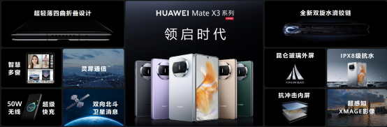 华为Mate X3创造性地实现了先锋科技、【极限词,建议优化】美学和卓越体验的融合,打造超乎想象的全新折叠旗舰,强悍开启折叠屏手机的崭新时代。