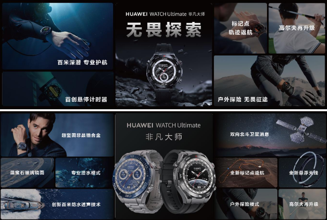 今日,华为全新高端旗舰智能手表华为WATCH Ultimate 非凡大师发布。作为华为迄今最强大的智能手表,华为WATCH Ultimate 非凡大师以划时代通信技术、卓越工艺及极致专业运动、高阶健康管理为用户带来腕上非凡体验。作为全球首款支持双向北斗卫星消息的大众智能手表(接收功能后续OTA升级支持),华为WATCH Ultimate支持一键发送北斗卫星消息,无地面网络信号也能求救;采用超坚固非晶锆合金表壳,带来全新腕上工艺美学;支持100米深海潜水,同时新增休闲水肺潜水、技术潜水(待后续OTA升级)等多种潜水模式,带来智能手表运动性能新体验;此外,华为WATCH Ultimate支持心率、血氧等基础健康监测,同时佩戴用户可加入与第三方医疗机构合作的多项健康研究,为用户带来更专业更丰富的高阶健康管理服务。