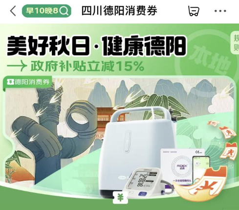 此次健康消费券活动由京东健康联合德阳市商务局、广汉市商务局共同推出,自10月29日10点起限时上线,面向全国用户开放领取与使用。消费者只需在京东APP搜索“德阳健康消费券”,即可领取15%的折扣券,单笔最高可减500元,累计补贴额度同样可达500元。该消费券覆盖京东自营全品类医疗器械,包括轮椅、血压计、血糖仪、电动轮椅等常见适老产品,且不限地域、不限户籍,真正实现“全国可领、全国可用”。
