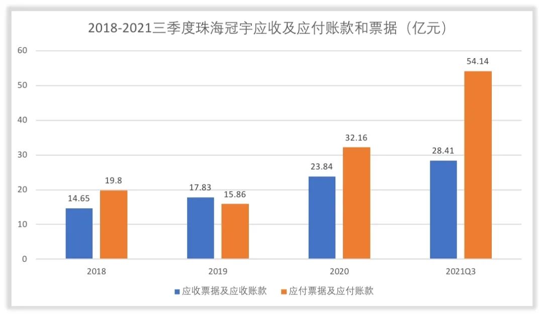 2021年前三季度,应收票据及账款28.41亿元,应付票据及账款54.14亿元。