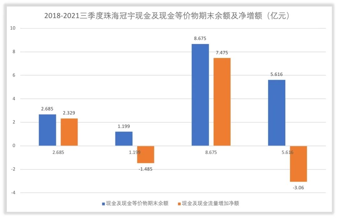 2018年至2021年前三季度,自由现金流【4】-7.55亿元、-4.16亿元、2.26亿元、-9.46亿元。