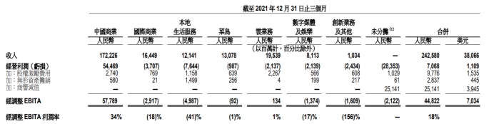 这种技术外溢不仅支持本地生活业务维持一个相对可观的利润,同时还反过来灌入中国商业和国际商业两大平台,为中小型企业提供技术助力;