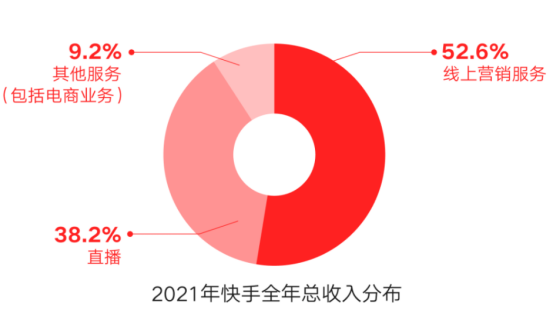 从业务上来看,快手的收入来源可以分为三大块:广告、直播、电商。
