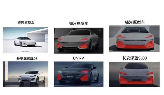 事后,有网友将长安几款车型和银河之光原型车做了对比图。